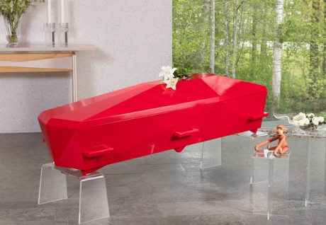 Kistan diamant är en exklusiv designkista av björkplywood med exklusiv lack. Den är tillverkad i Danmark i design av Jensen. Finns i röd, svart och vitt samt i matt utförande i svart och vitt. Sidoklädsel med ängsmotiv. Tyginrett lock. Du beställer den hos en auktoriserad begravningsbyrå.