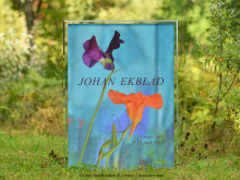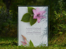Glass tombstone 6 - Gravsten i glas med motiv av klematis. Ljusbeständigt motiv. |