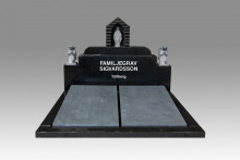 l628 - Svart polerad granit, polerad med slipade kanter. Texten är försänkt i silver, dekor försänkt och blästrad. |