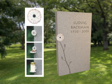 Glass tombstone 8 - Gravsten i glas med motiv av krasse. |